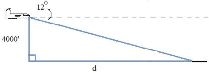 The Angle of Depression from a Plane to the Airport is 12o. The height of the plane is 4,000 ft. What is the Horizontal Distance from the current position (d) of the Plane to the Airport. Please see Fig below: