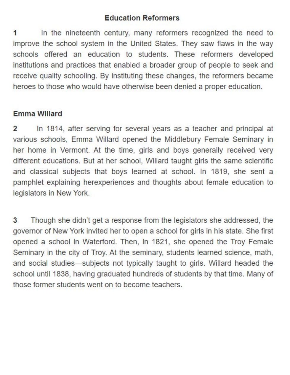 "These reformers developed institutions and practices that enabled a broader group of people to seek and receive quality schooling."