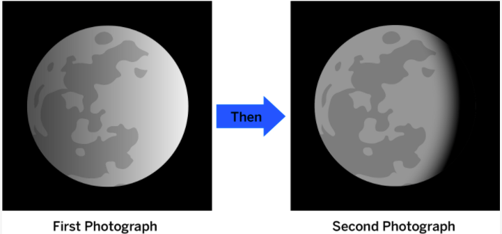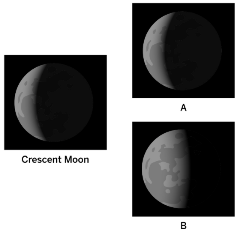 A student astronomer went out and took photographs of the Moon that were several days apart. Images that look like her photographs are shown above. The light part of the Moon appeared to get smaller over time. Why did this happen?
