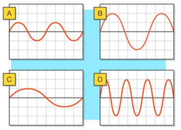 Four different sound waves are shown. Which will have the greatest wave speed?