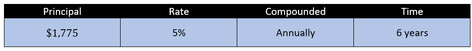 David obtained a 3-year, $6,000 discounted loan at 6%. Find the amount of the discount.