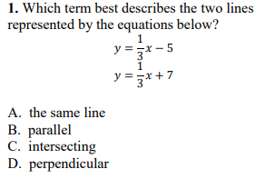 Reasoning: Same slope and y-intercepts