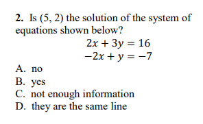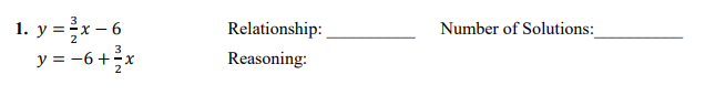 Select three responses, one for each category (Relationship, Number of Solutions, Reasoning)