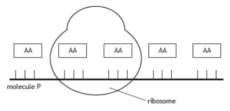 Proteins are produced at the ribosome as shown below Molecule P carries a copy of the DNA code from the nucleus. What is the name of molecule P?