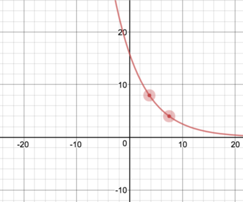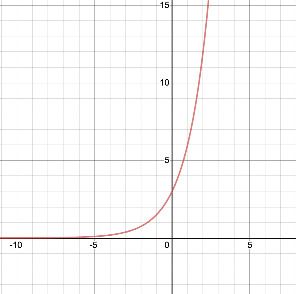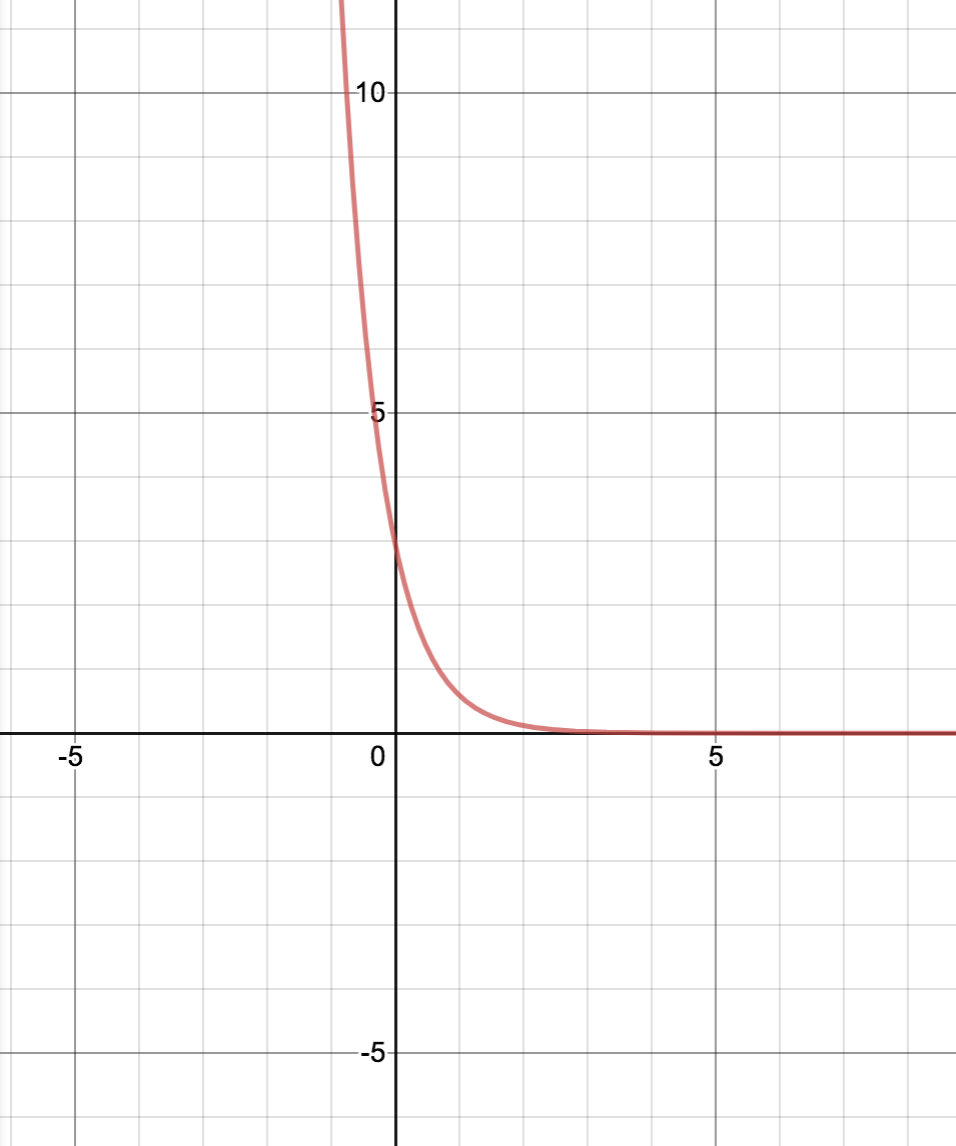 La valeur initiale de ce graphique vaut 3. Dans f(x) = acx, quel paramètre aura cette valeur ?