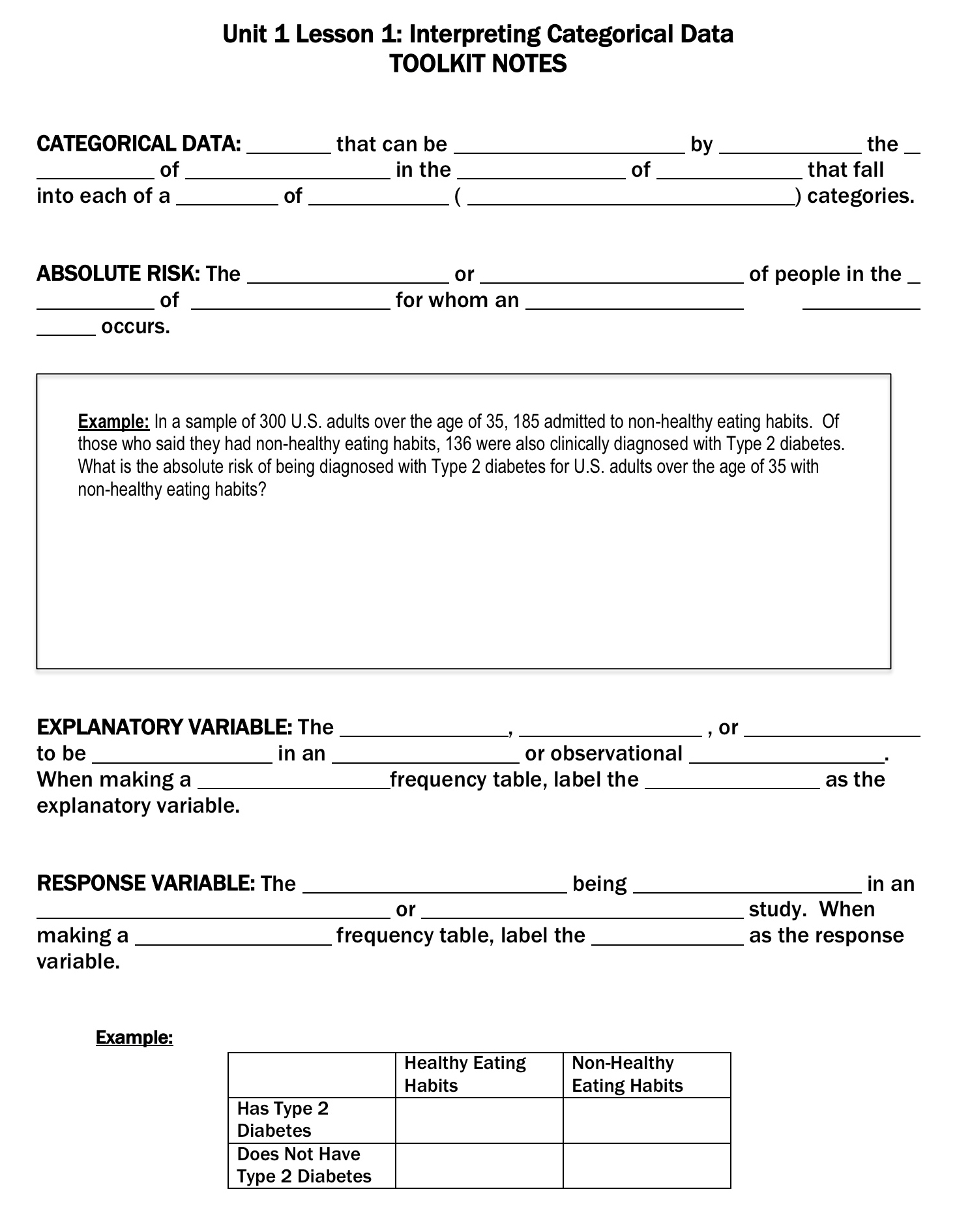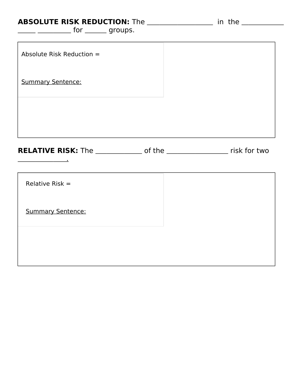 Example: In a sample of 300 U.S. adults over the age of 35, 185 admitted to non-healthy eating habits. Of those who said they had non-healthy eating habits, 136 were also clinically diagnosed with Type 2 diabetes. What is the absolute risk of being diagnosed with Type 2 diabetes for U.S. adults over the age of 35 with non-healthy eating habits?