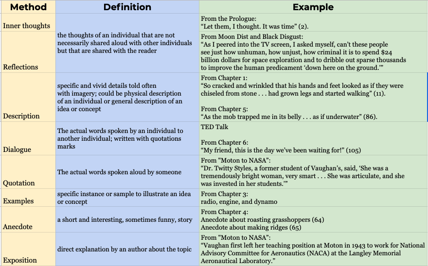 What author method is ONLY used in Hidden Figures?