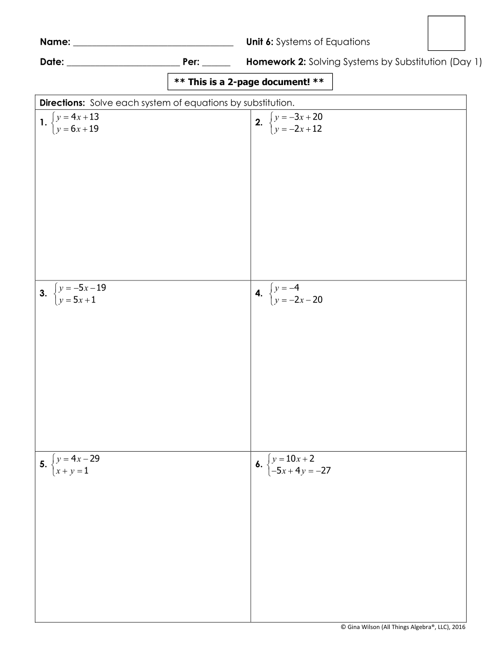 Solving Systems by Substitution (Pre-Algebra)