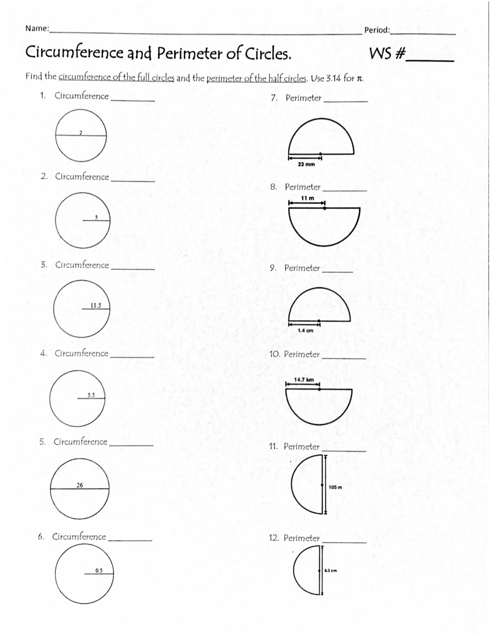 7LRIS WS #9 - Circumference and Perimeter of Circles