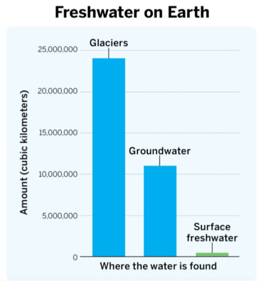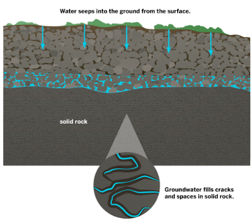 A reservoir is somewhere that freshwater is stored. A groundwater reservoir stores water underground and when it rains or when water flows on the surface, some of the water goes through the soil and collects between the spaces of rock underground.