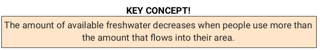 The amount of water available in an area depends on the amount of water flowing in and the amount of water flowing out of that area.