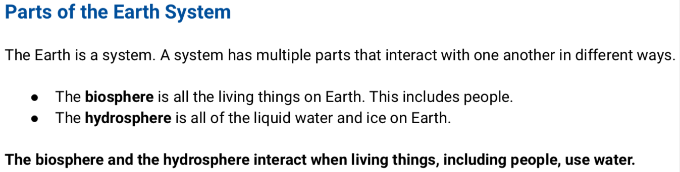 Which of the following gives an example of the biosphere and the hydrosphere interacting? Select all that apply.