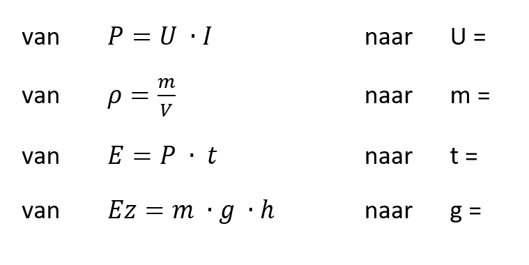 Hieronder (in figuur 2) staan de opgaven om te oefenen met het herschrijven van formules.