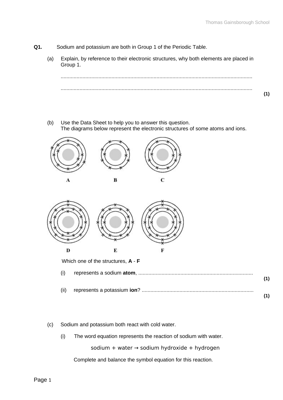 Sodium and potassium are both in Group 1 of the Periodic Table.(a) Explain, by reference to their electronic structures, why both elements are placed in Group 1.