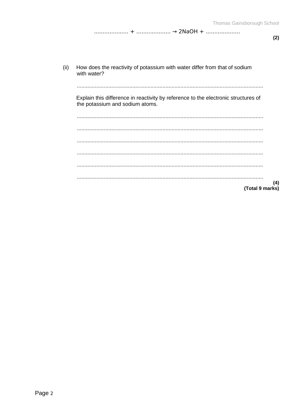 (i) The word equation represents the reaction of sodium with water.