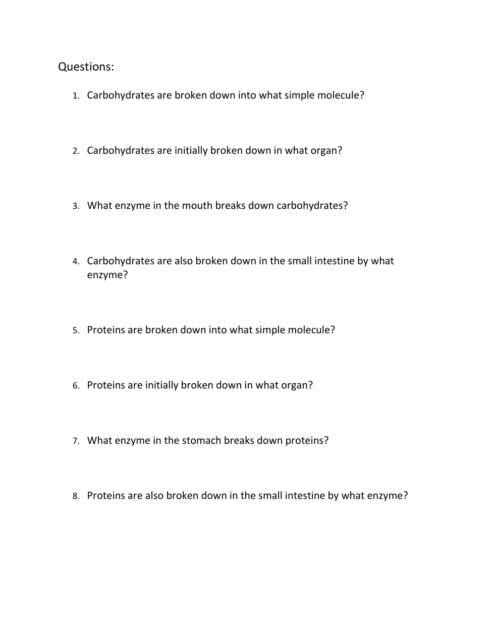 Carbohydrates are also broken down in the small intestine by what enzyme?