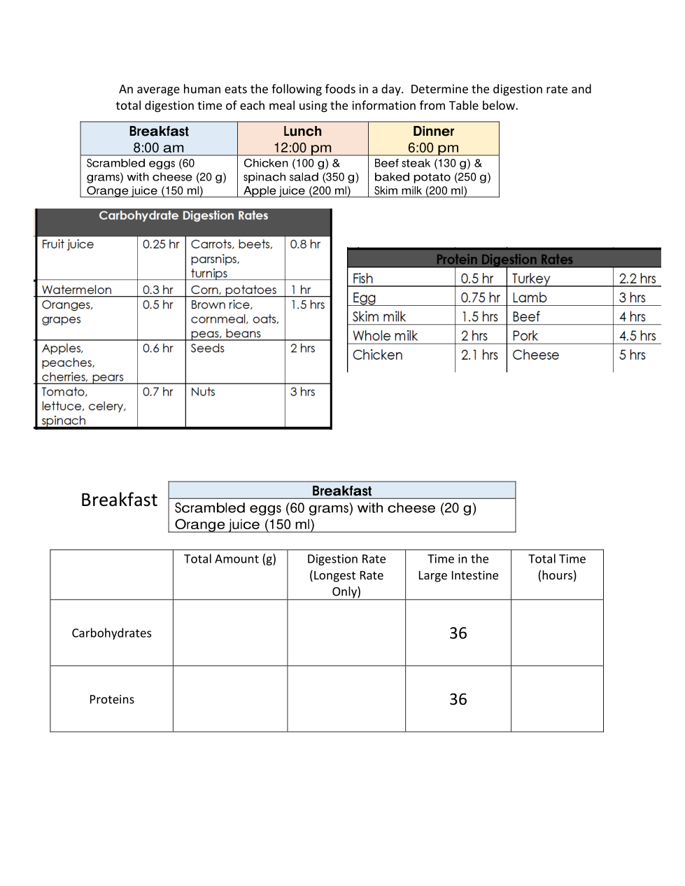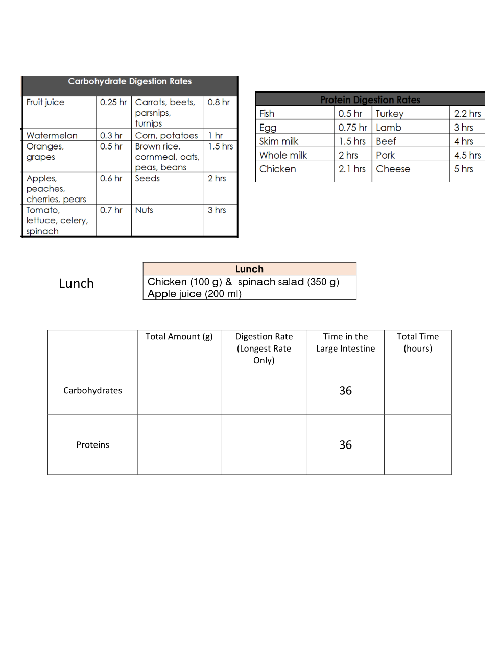 How long will it take for the total amount of carbohydrates to be digested in lunch?