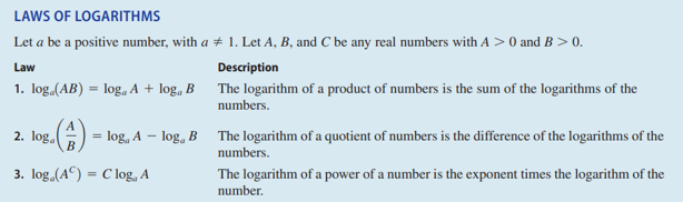 Below is a graphic with the Laws of Logs, numbered 1, 2 or 3. Use these numbers later in the test when prompted.
