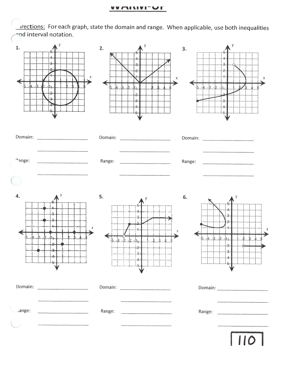 Write the domain of #4 on the worksheet in Set Notation. (Don't include any extra spaces.)