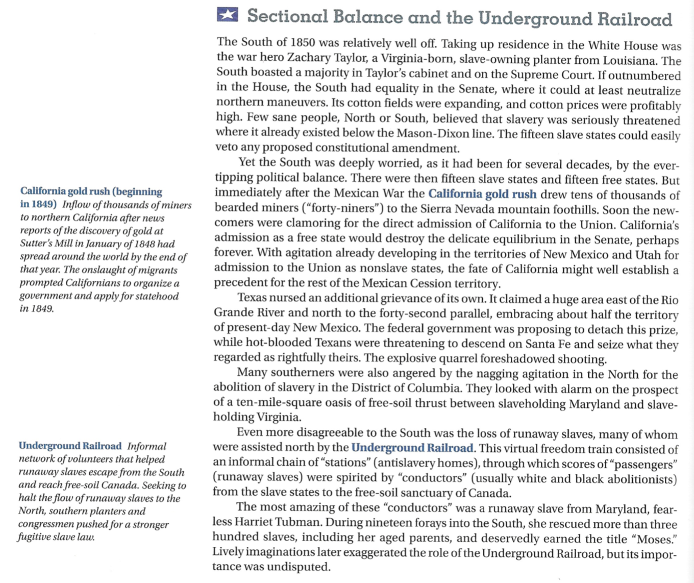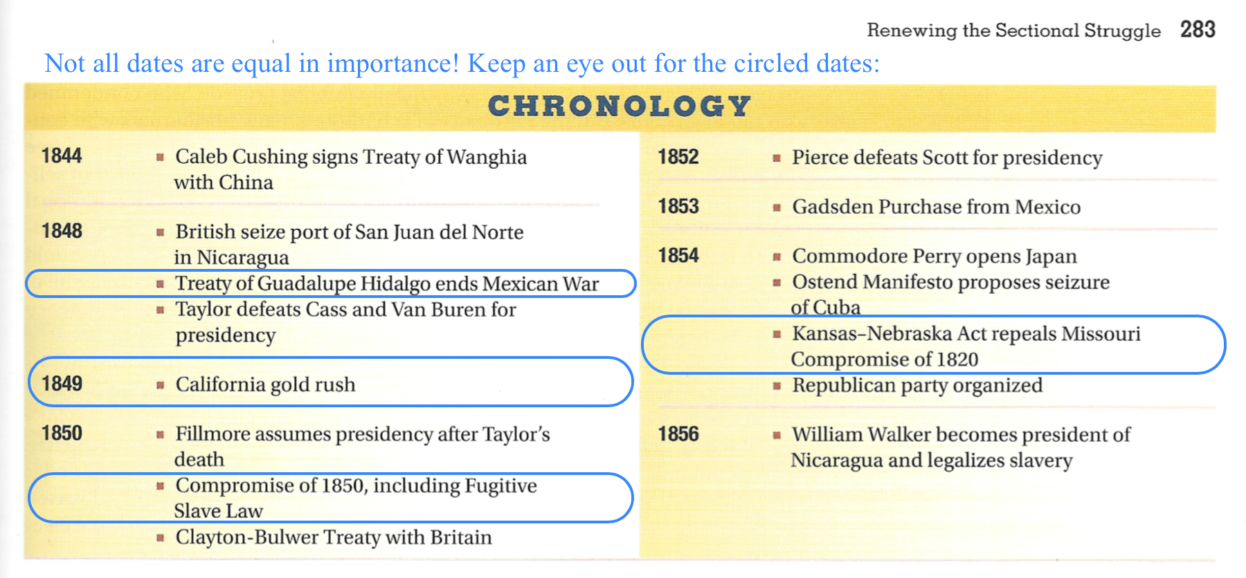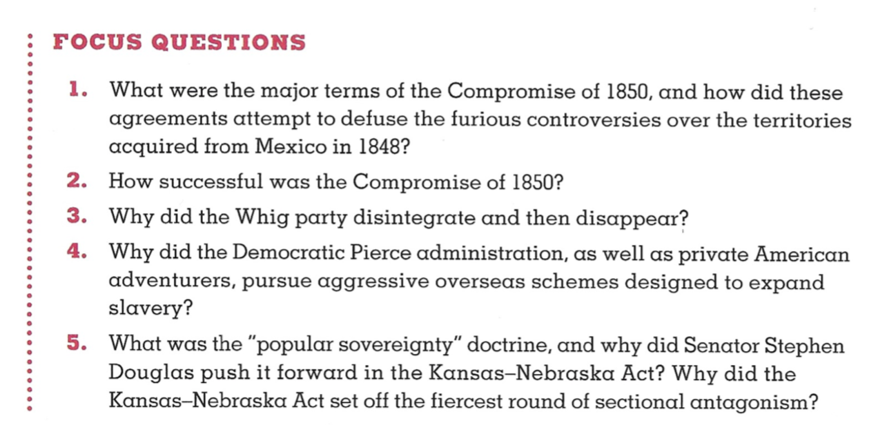 APUSH Chapter 18, Part 1: Renewing the Sectional Struggle (1848-1854)