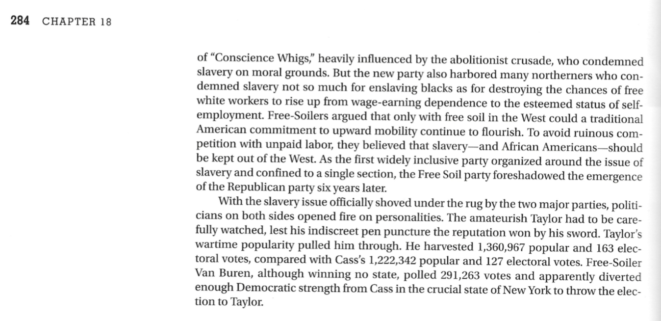 According to the passage, the Free Soil Party was a direct result of the fact that
