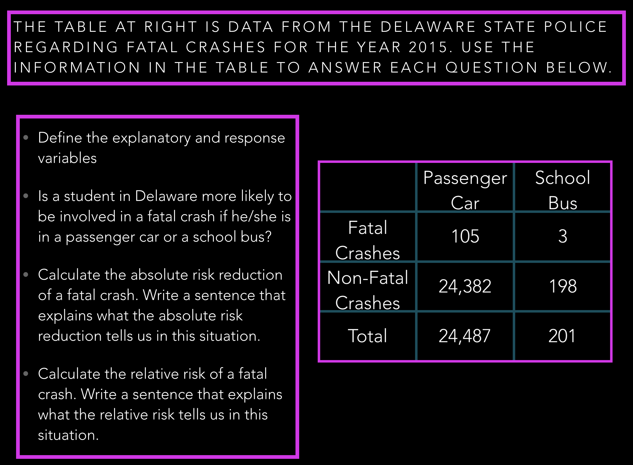 Absolute risk of a fatal crash in a school bus (include calculations) =