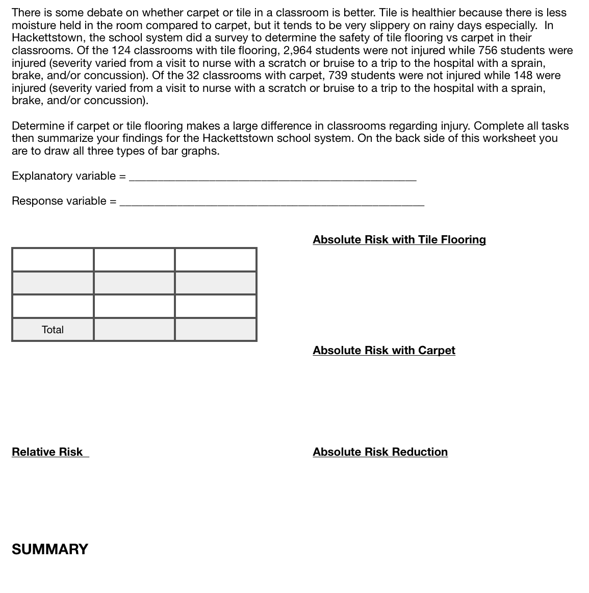Absolute Risk of injury with Tile Flooring (include calculations)