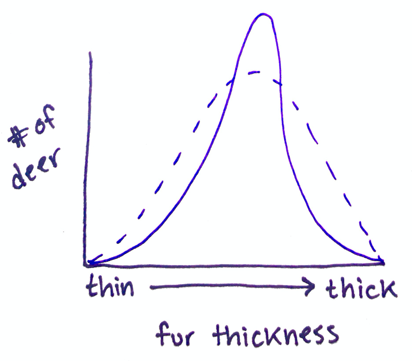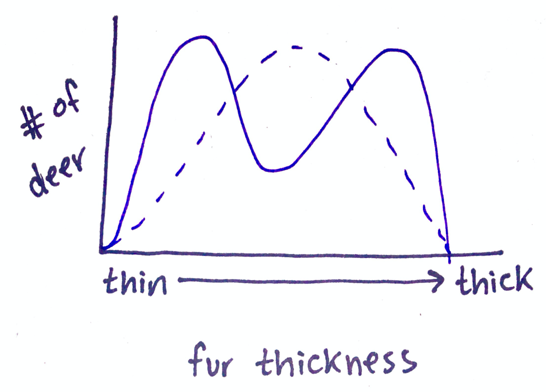 - If fur thickness was the trait it would involve NEITHER of the thin or thick fur organisms being the fittest but rather the medium fur thickness
