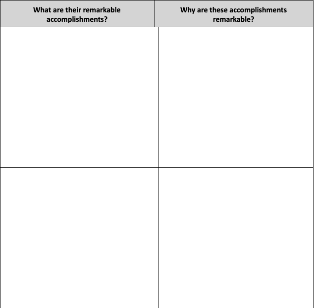 Claim = thesis statement - why you think your person's accomplishments are remarkable