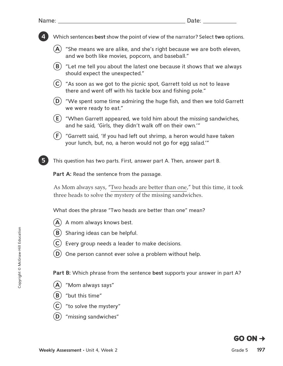 What is the best piece of evidence that supports your answer to question number 4?