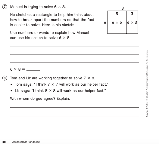 7. Use numbers or words to explain how Manuel can use his sketch to solve 6 x 8.