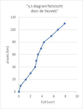 Wat was de gemiddelde snelheid tussen de 50 en 110 km?