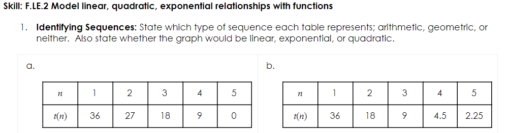 Skill A.SSE.3 Transform linear/quadratic/exponential expressions for a given purpose.