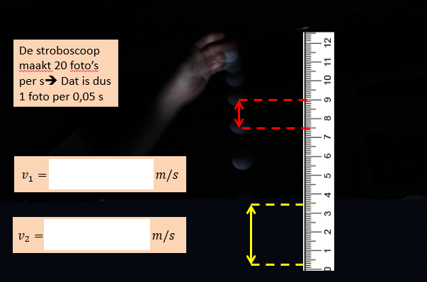 Leg uit waaraan je nog meer kunt zien dat de snelheid van de bal steeds toenam.
