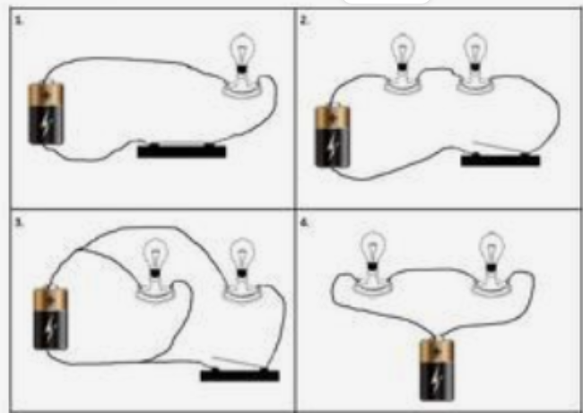 Simple circuit contains single battery, single bulb,switch and wires.