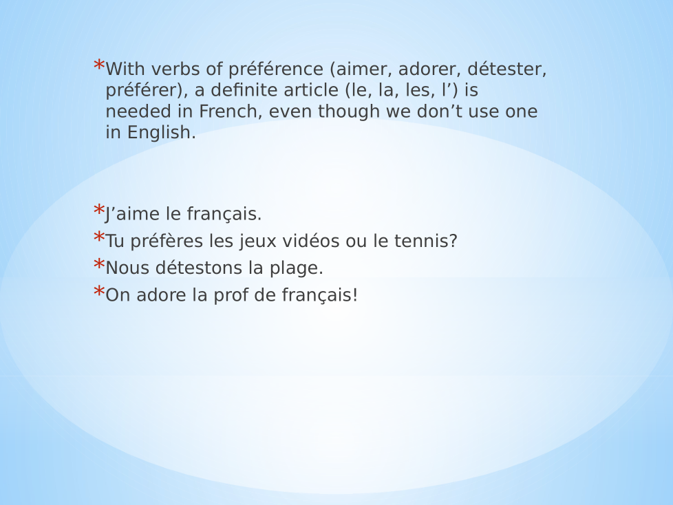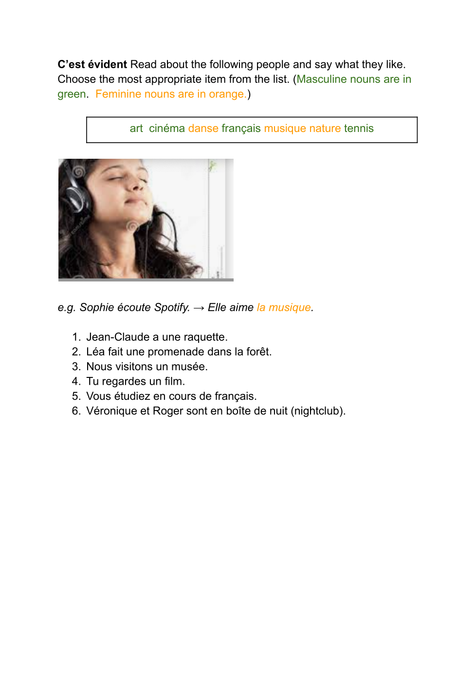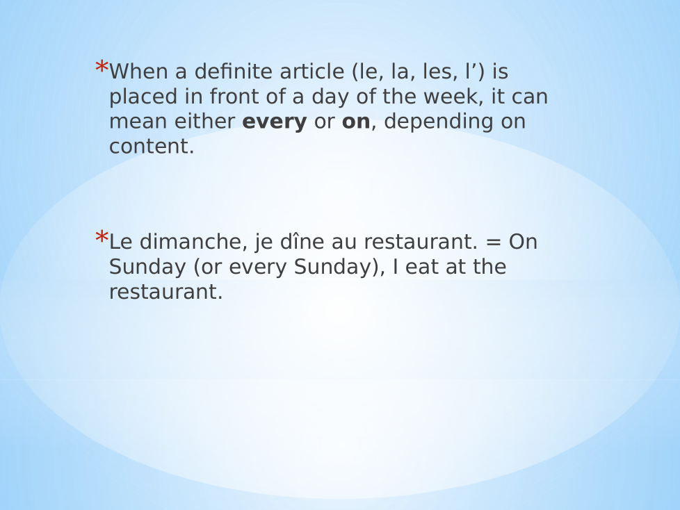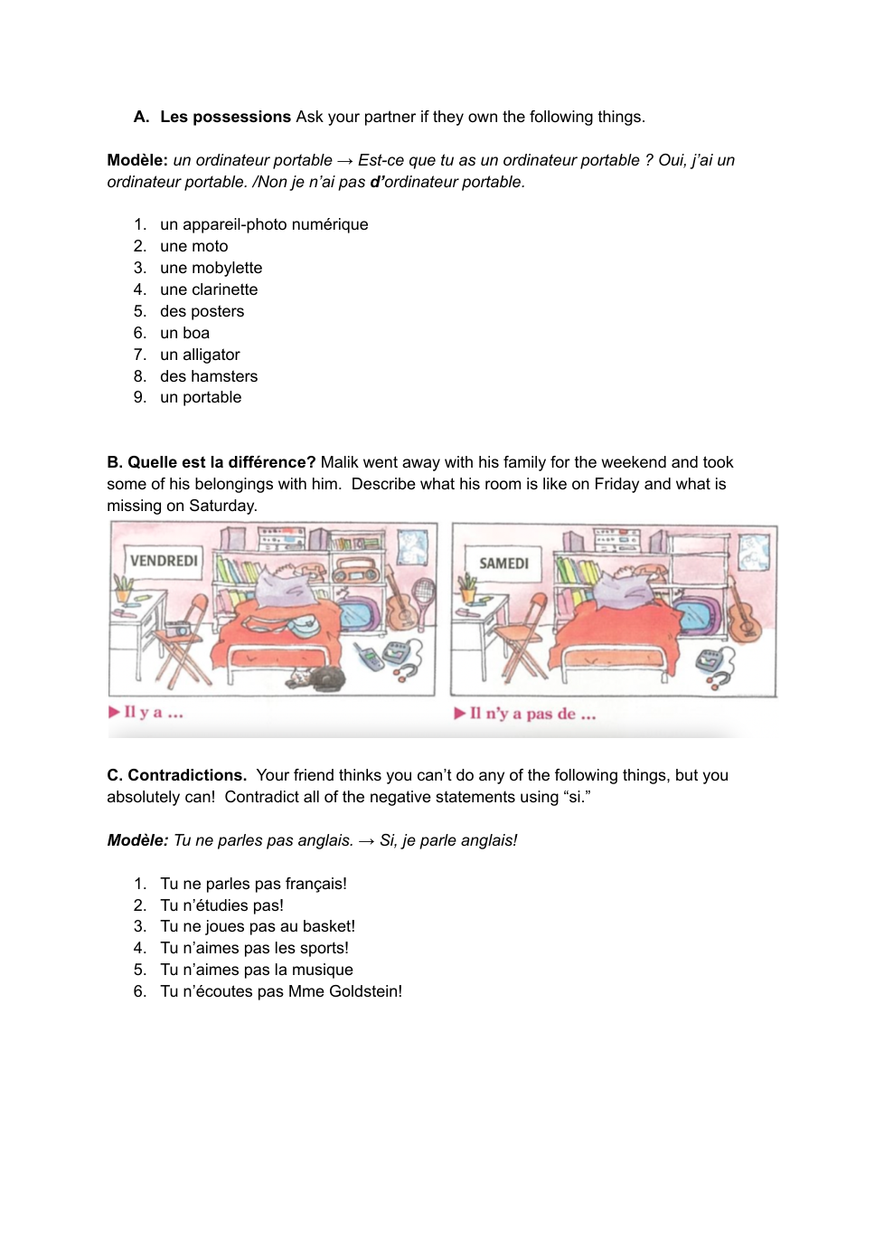 In a short e-mail to Mme Goldstein, describe what you do or do not do regularly on various days of the week. Select two days and two different activities for each day. Use only the vocabulary and grammar that you know.