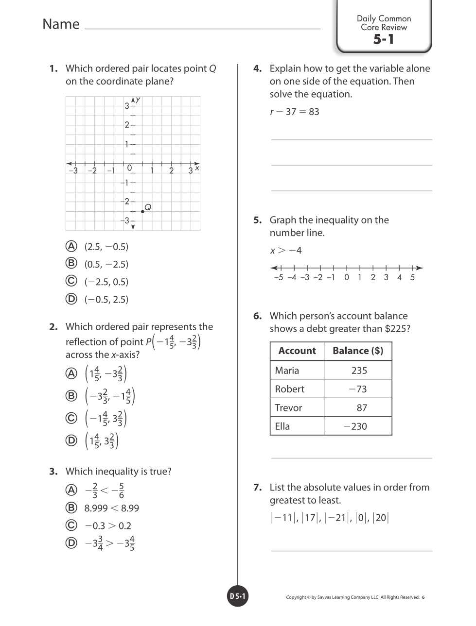 Which ordered pair represents the reflections of point P (-1 4/5, -3 2/3) across the x axis.
