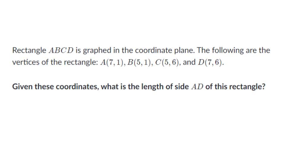 **Use the Distance Formula and the coordinates for point A and Point D.