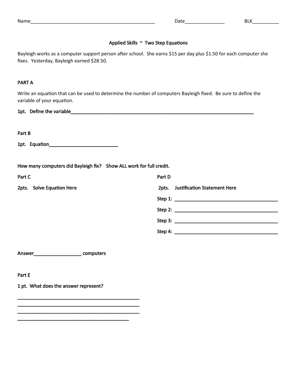 Part D: Write your response. Make sure you identify what you are typing for each step, see example: