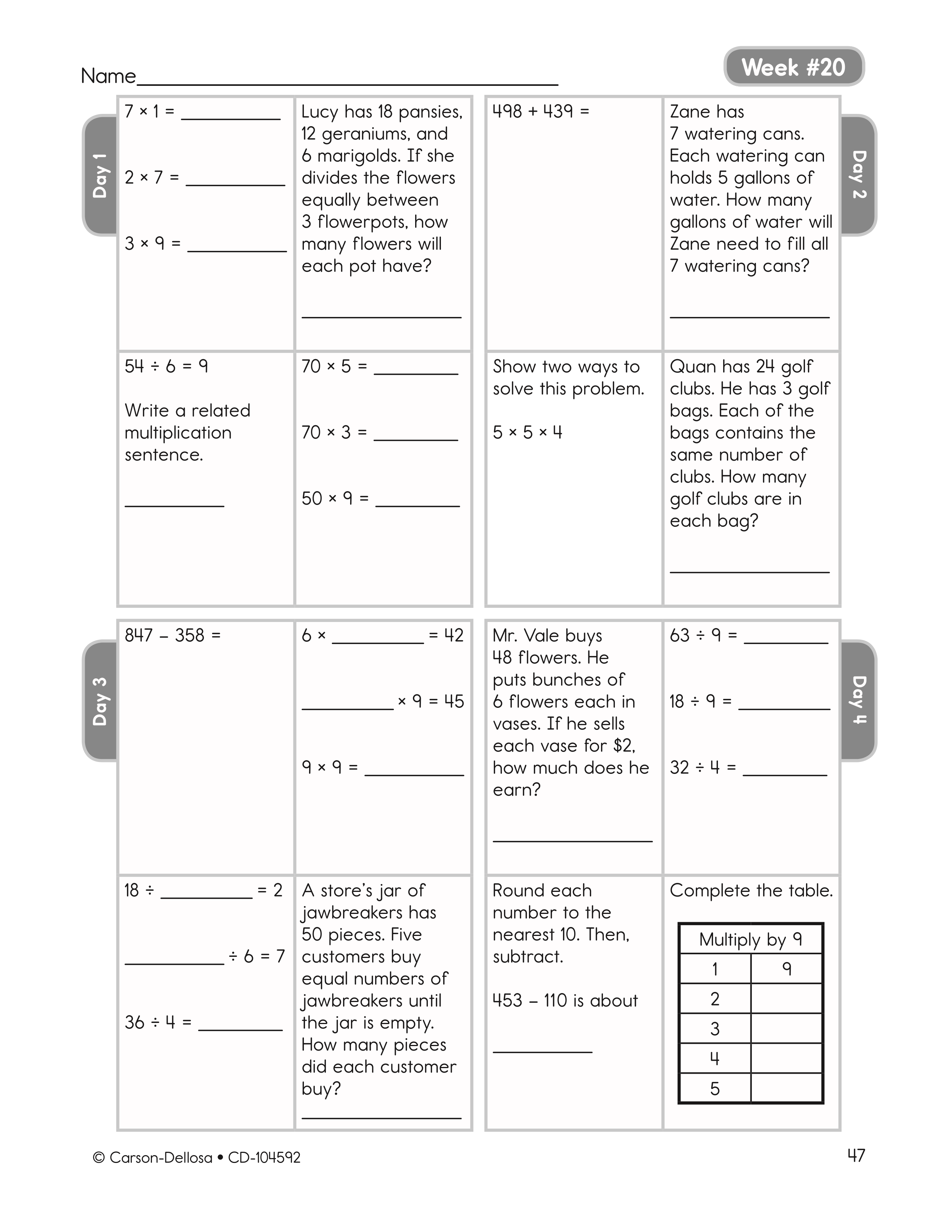 _____ x 9 = 45