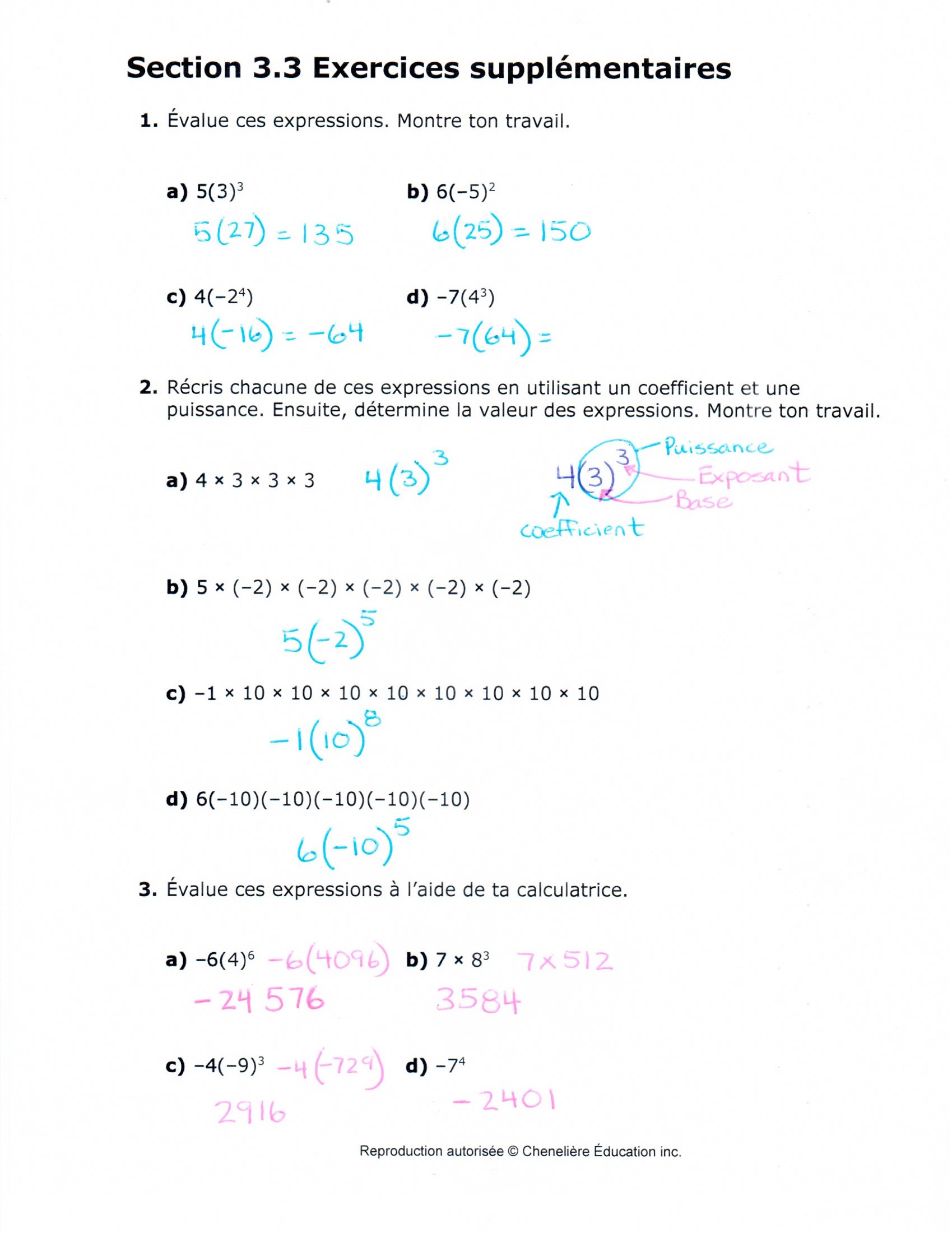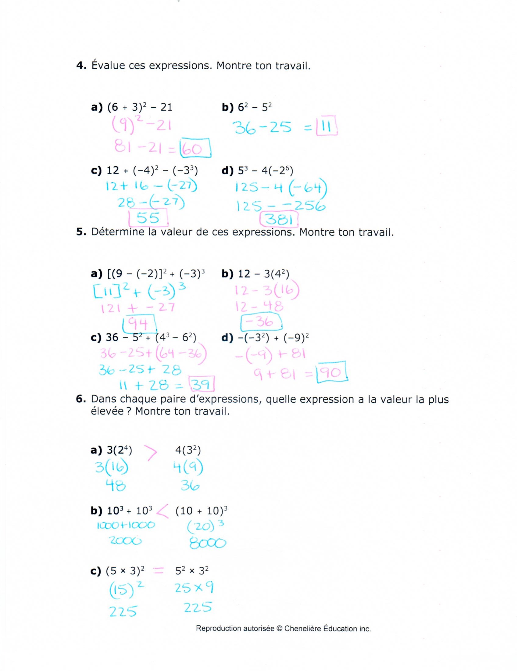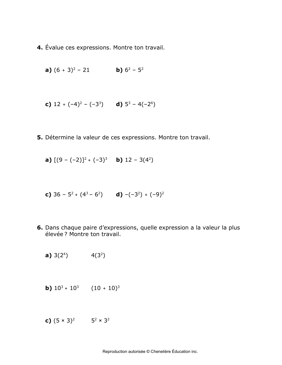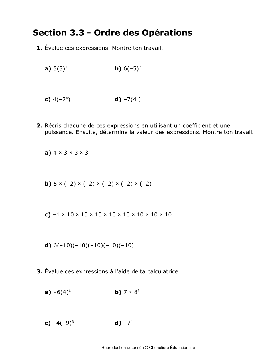 Math 9FI - 3.3 - Ordre des Opérations avec les Exposants