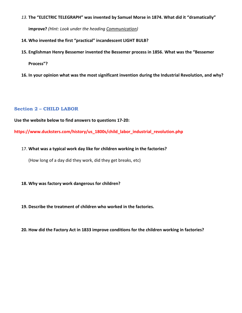 The “ELECTRIC TELEGRAPH” was invented by Samuel Morse in 1874. What did it “dramatically” improve? (Hint: Look under the heading Communication)