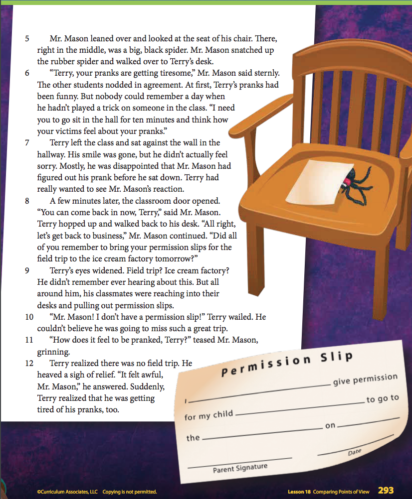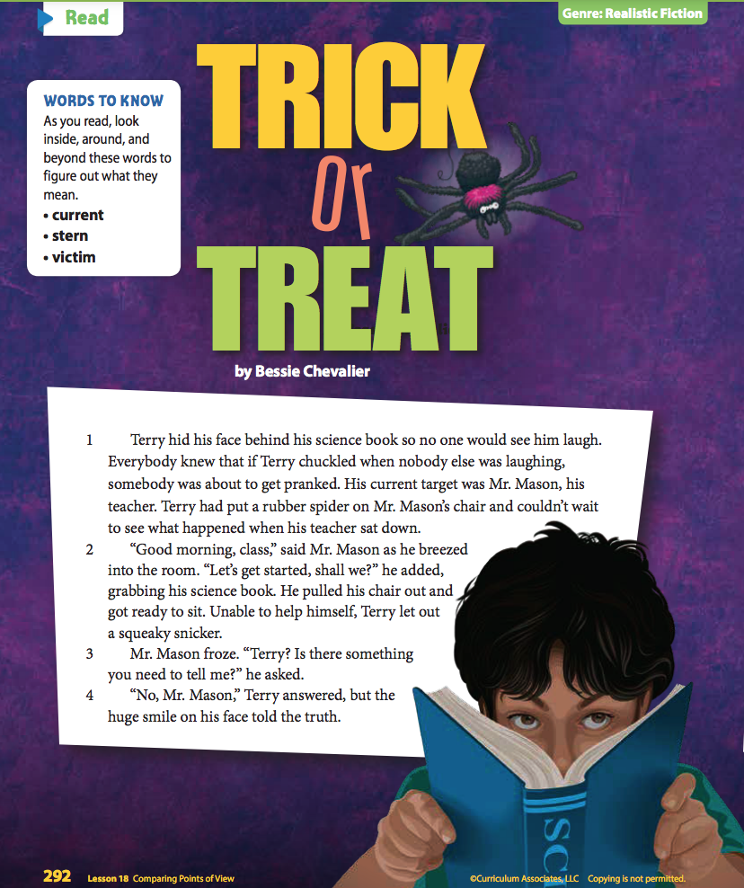 Which sentence from "Trick or Treat" best shows how the narrator's point of view reveals a character's feelings?