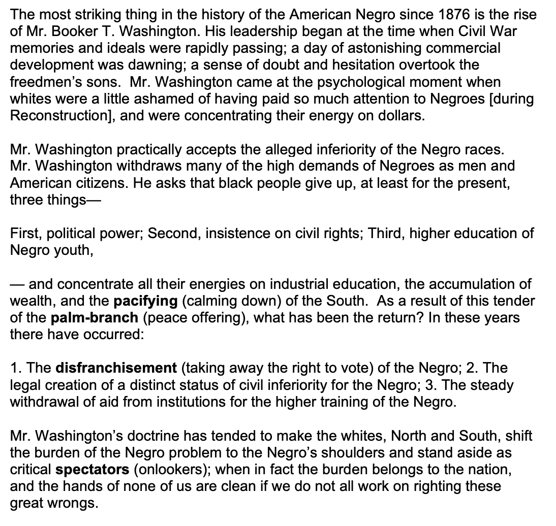 Who argued that blacks should demand full and immediate equality and not limit themselves to unskilled labor.