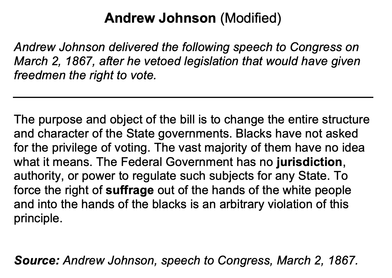 Andrew Johnson supported _________________ which allowed southern states to impose strict laws that restricted the rights of the newly freed African Americans