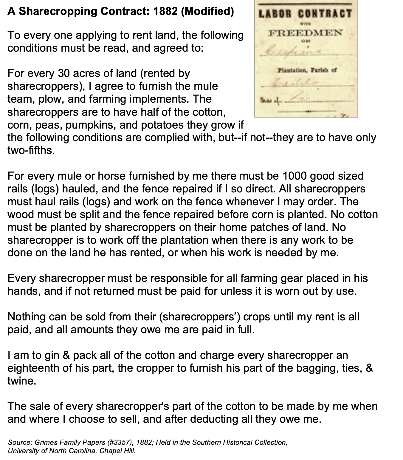 What parts of this contract do you think caused the sharecroppers to be in debt to plantation owners?