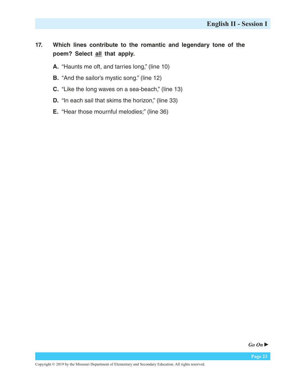 Which lines contribute to the romantic and legendary tone of the poem? Select ALL that apply.