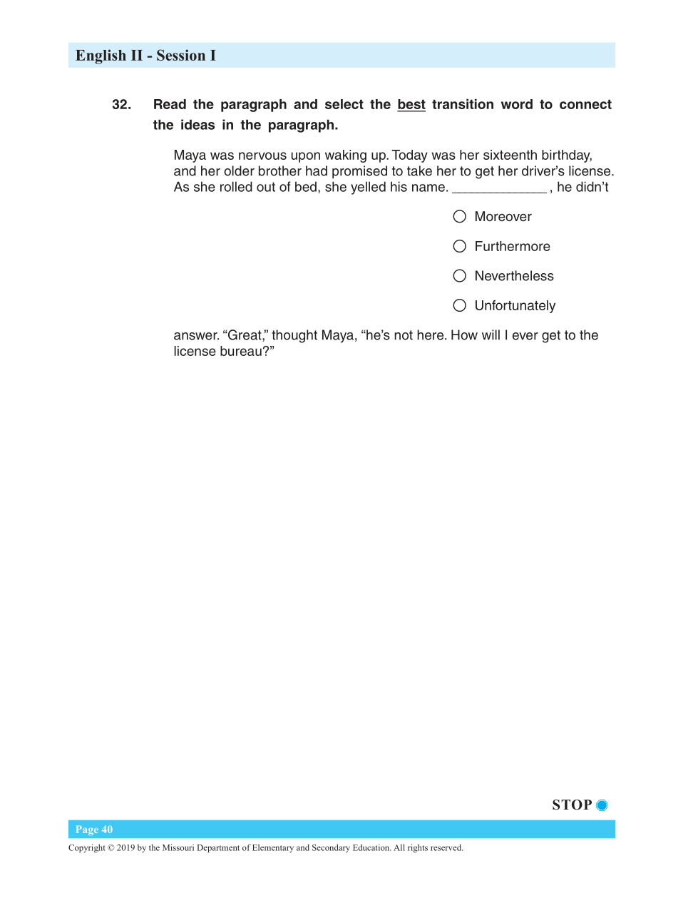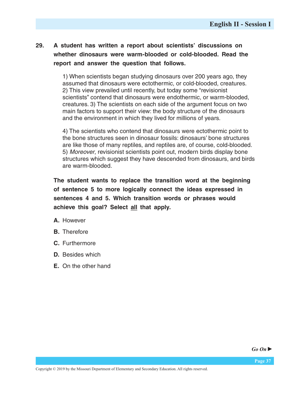 Which transition words or phrases would achieve this goal? Select ALL that apply.