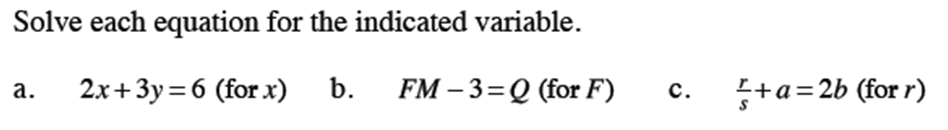 Solve for F: FM - 3 = Q