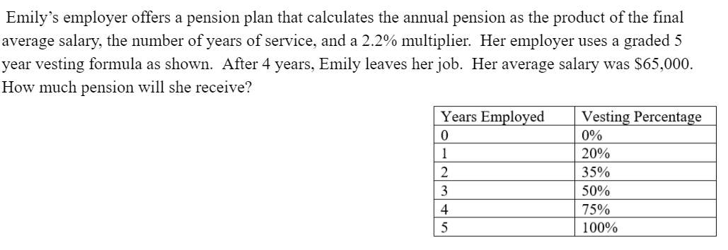 Beth worked for a company that calculates a pension that is based on the average of the highest 5 years, number of years of service, and a 2% multiplier. Her highest 5 years were $ 83,612 $ 82,893 $ 88,475 $ 85,873 $ 83,738. She worked for the company for 31 years. Calculate Beth’s Annual Pension.
